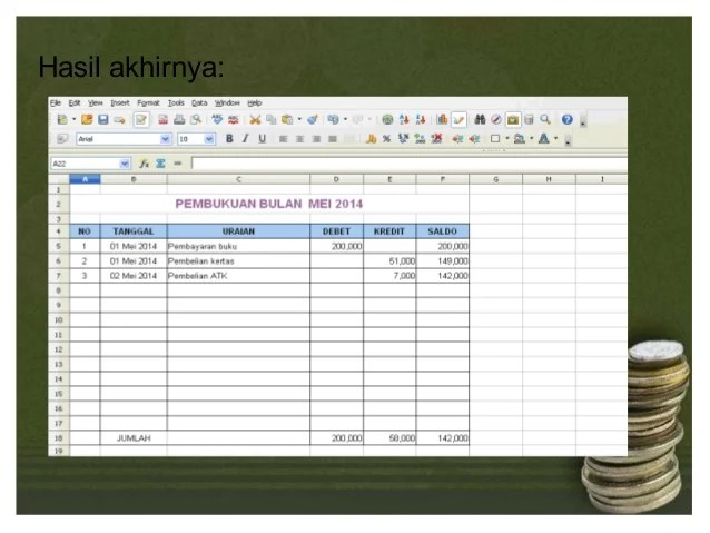 Dibawah ini contoh pembukuan sederhana dengan excel yang bisa anda pakai.